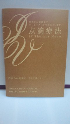 院内においてある点滴療法のメニューのパンフレット(無料配布しています)