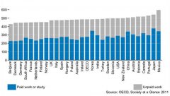 経済協力開発機構(OECD)が、OECD加盟29カ国の有給の労働と家事などの無給労働に費やす1日当たりの平均時間を調べました。