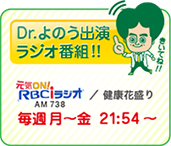 2014/08/10 ●院長のラジオ放送が決定致しました!! 9/1(月)より1ヶ月間、院長出演のラジオ放送がはじまります! 放送時間は月曜~金曜の午後9時54分! 放送局は琉球放送・RBCiラジオ(AM738) <<健康花盛り!>>です! 病気のあれやこれや。そして、パーソナリティの富原志乃さんとの楽しい会話をお楽しみください◎ 月曜から金曜まで毎日放送です! 1ヶ月間限定です!お聴き逃しなく!