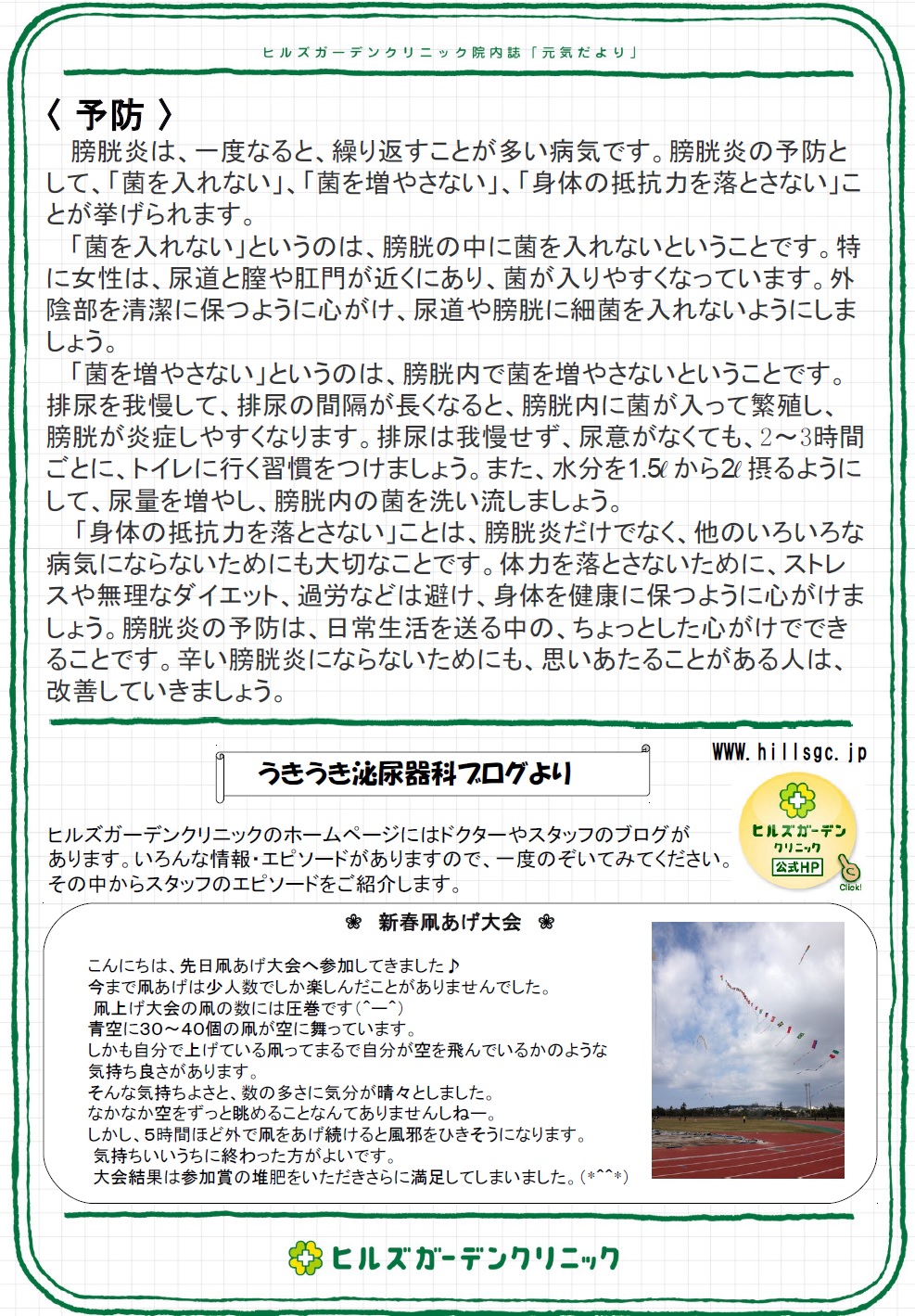 2月院内報!今月は女性に多い急性膀胱炎を特集いたしました!