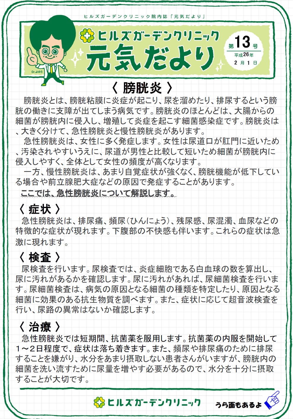 2月院内報です!特集は<膀胱炎>